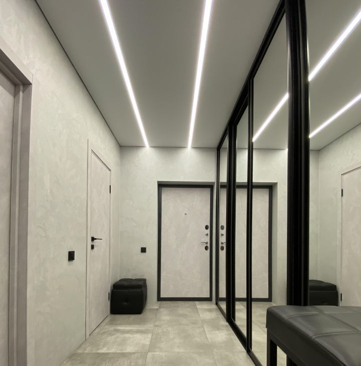 гардеробная 2,6кв м с раздвижной системой в коридоре , с этой же системой место для хранения на лоджии