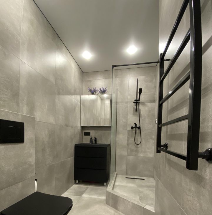 Керамогранит по всему полу и на стенах в санузле