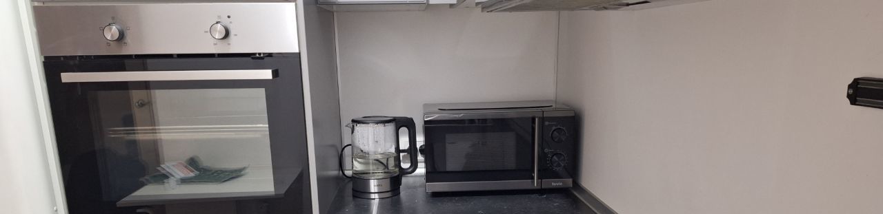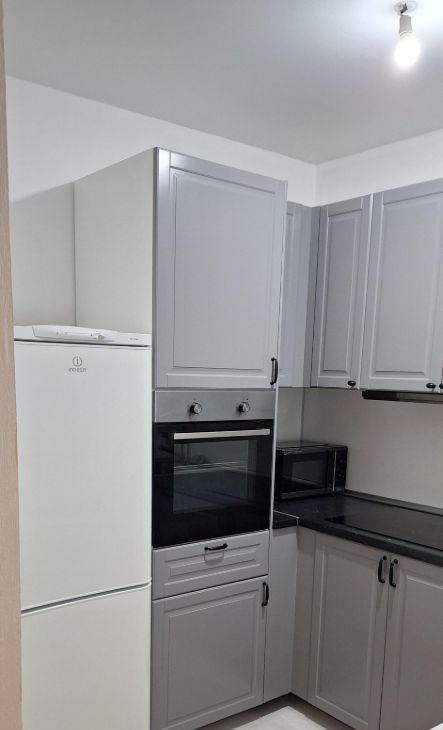 Внутри вас ждет современная кухня с качественной мебелью и техникой. Включая холодильник, духовой шкаф, электро плиту, электрический чайник и микроволновку. Для хранения вещей предусмотрен вместительный шкаф. Есть стиральная машина.