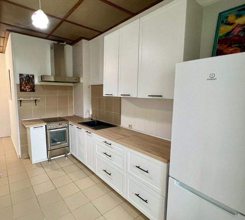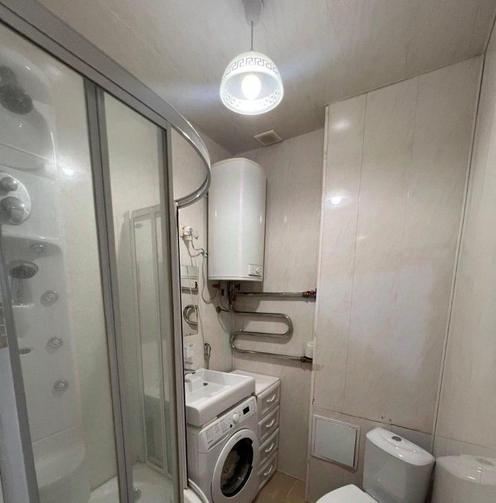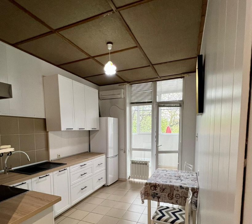 Светлая квартира с высокими потолками (3,2м), новой кухонной мебелью и бытовой техникой. Хорошо оборудована система хранения вещей, есть большая гардеробная. Техника: холодильник, электроплита, микроволновка, стиральная машина, телевизор. В квартире также установлены сплит-система и водонагреватель.
