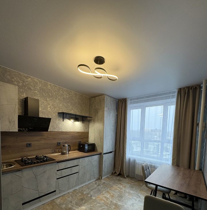 Сдаётся светлая квартира с дизайнерским ремонтом на втором этаже монолитно-кирпичного дома 2023 года постройки. Просторная кухня площадью 12 м² оснащена современной техникой, включая:холодильник,микроволновку,чайник,посуду.