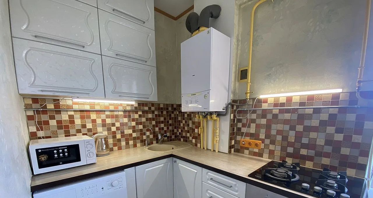 Кухня площадью 7 м2 полностью оборудована для приготовления и приёма пищи — оснащена всей необходимой мебелью и техникой. Продуманная планировка даёт возможность удобно разместить обеденную зону.