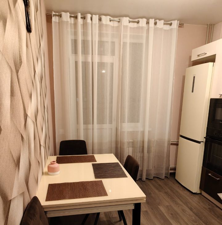 Сдается уютная однокомнатная квартира с евроремонтом. Общая площадь — 38 кв. м, жилая — 20 кв. м, просторная кухня — 12 кв. м. Квартира расположена на 14 этаже 21-этажного кирпичного дома, построенного в 2018 году. Высота потолков — 2.8 метра, окна выходят во двор, поэтому в квартире тихо и спокойно.
