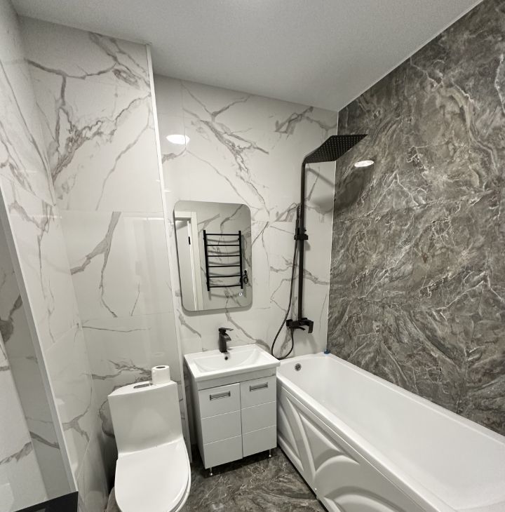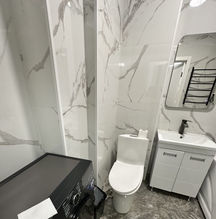 В квартире есть всё необходимое для комфортного проживания. Современная мебель в комнате и на кухне, поэтому вам не придётся тратиться на обустройство. На кухне установлена вся необходимая техника: холодильник, кондиционер, телевизор и стиральная машина. Ванная комната оборудована ванной, что идеально для любителей расслабиться после долгого дня.