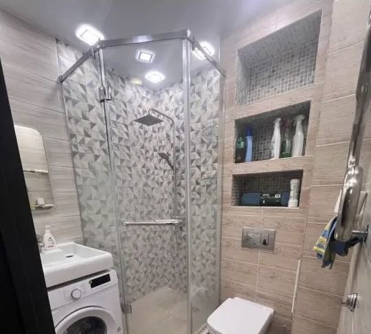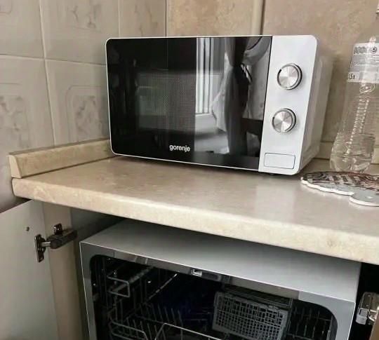Из бытовой техники: стиральная машина, микроволновка, сплит, телевизор, холодильник, утюг, посудомойка, электрический чайник.