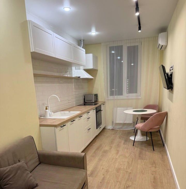 Предлагается в аренду уютная однокомнатная квартира в современном доме, построенном в 2023 году. Общая площадь составляет 40 кв. м, что включает в себя просторную жилую зону в 20 кв. м и кухню площадью 12 кв. м. Квартира расположена на 22 этаже 25-этажного дома, откуда открывается прекрасный вид на город.