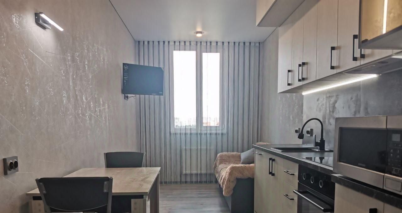 Сдаю евродвушку, расположенную на самом лучшем 12-м этаже нового 25-этажного дома, построенного в 2023 году. Общая площадь квартиры составляет 40 кв. м, из которых 22 кв. м — жилая, а просторная кухня занимает 15 кв. м. Высота потолков — 2,4 метра. Из окон открывается вид на проспект Ленина и во двор, что позволяет наслаждаться как городским пейзажем, так и тишиной. Квартира укомплектована полностью мебелью/техникой. Сплит, телевизоры, посудомойка и проч. Теплый пол в коридоре/кухне/санузле.