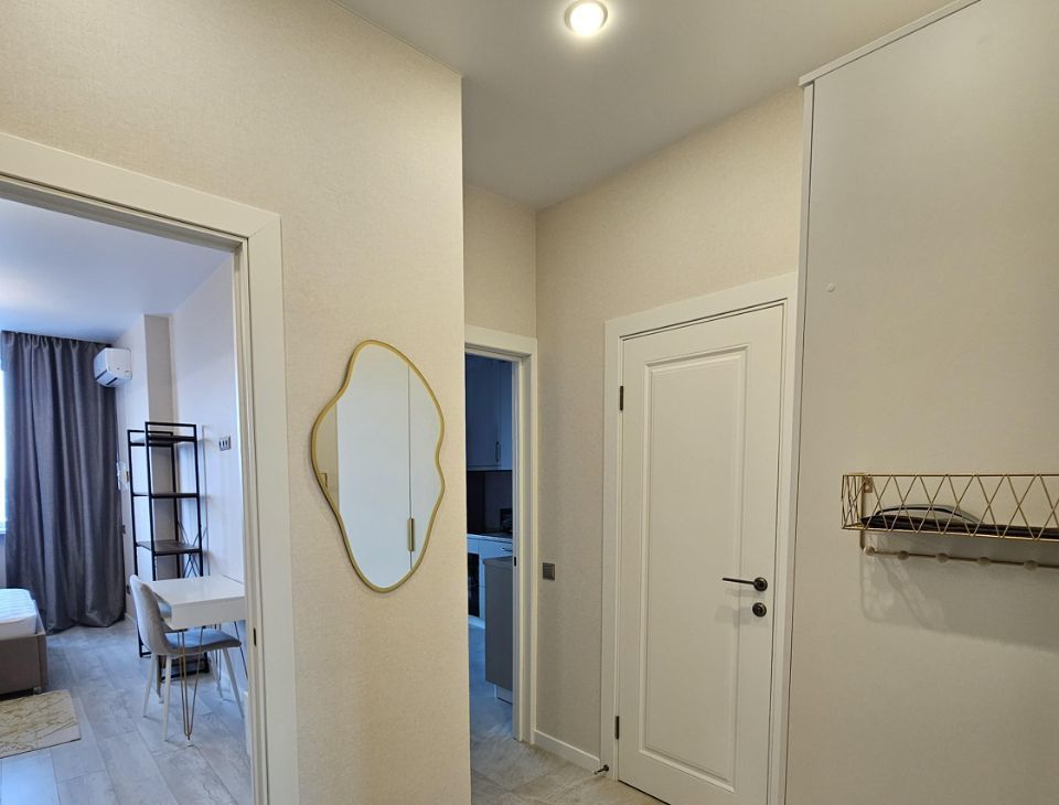 Сдается уютная однокомнатная квартира на 10 этаже монолитно-кирпичного дома 2022 года постройки. В квартире выполнен свежий евро ремонт, что создает атмосферу уюта и комфорта. Просторная кухня оборудована всей необходимой техникой, включая холодильник, варочную панель и посудомоечную машину. Из кухни выход на застекленную лоджию с панорамным видом.