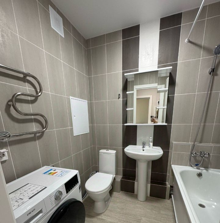 Квартира полностью готова к проживанию: в ней есть вся необходимая мебель на кухне и в комнате. Совмещенный санузел оснащен ванной. Для вашего комфорта установлены кондиционер, холодильник, телевизор и стиральная машина. Планировка квартиры продумана до мелочей, а балкон станет отличным местом для отдыха.