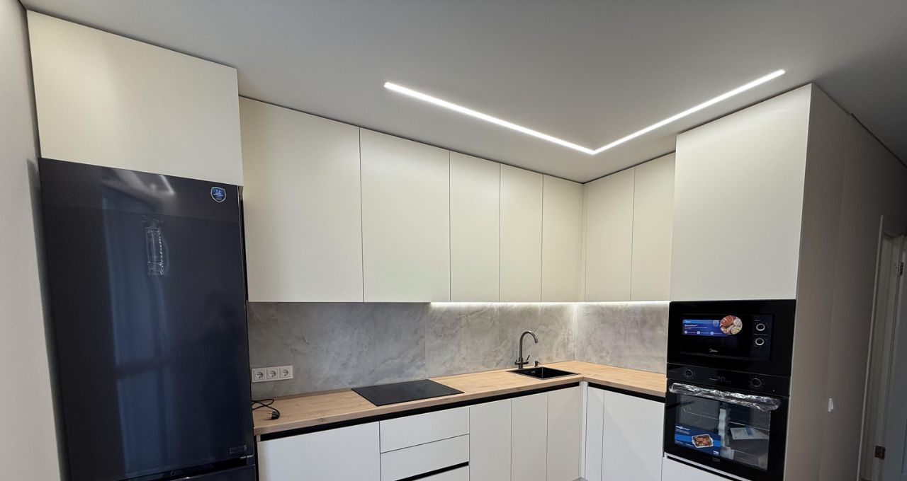 Квартира с дизайнерским ремонтом выполненным качественными материалами. Кухня полностью оборудована всем необходимым- двухкамерный холодильник, индукционная варочная панель, микроволновая печь, вытяжка, духовой шкаф, посудомоечная машина, стиральная машина.
