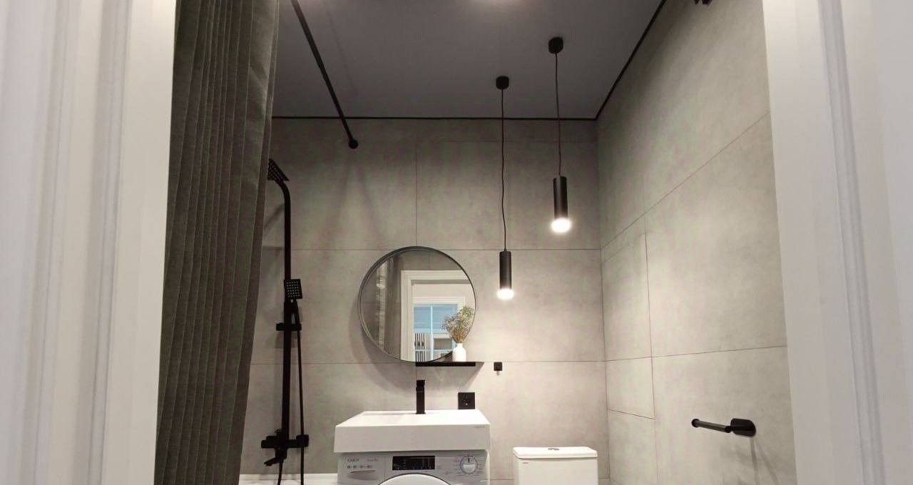 Санузел: система Нептун (защита от затоплений и автоматическое перекрытие воды), проточный водонагреватель, качественные смесители, душевая система и стиральная машина.