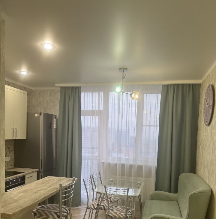 ОКНА ПАНОРАМНЫЕ , с 16 этажа вид шикарный, даже Дон видно :) а ночью красивый светящийся город . Кстати , есть шторы блэк аут и в комнате , и на кухне.