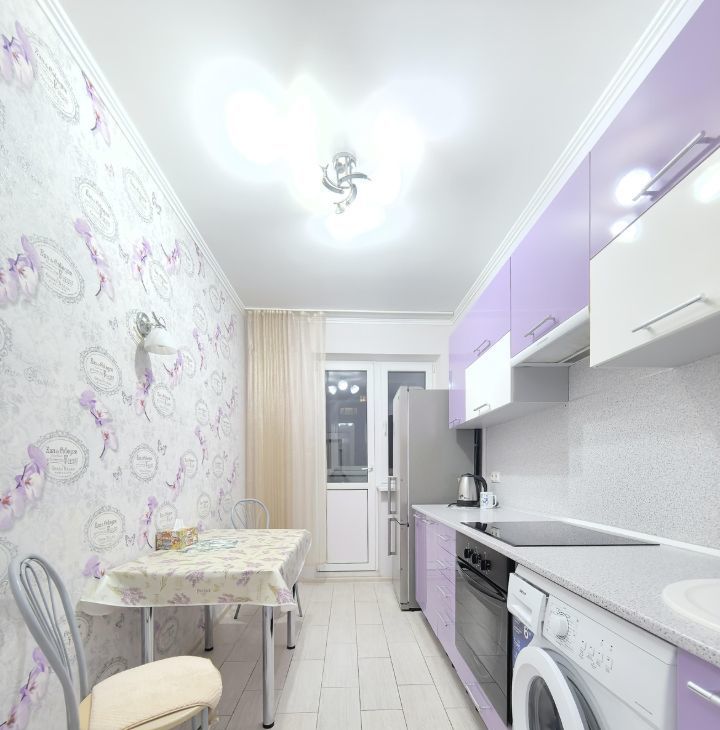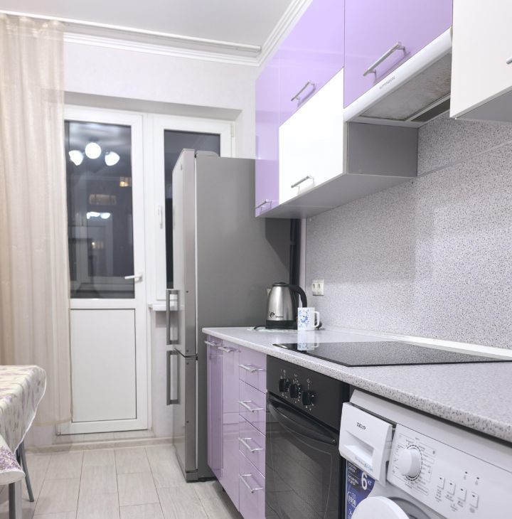 В квартире выполнен современный ремонт, имеется: телевизор, кондиционер, раскладной диван, шифоньер, встроенный кухонный гарнитур, холодильник, стенка -горка, стиральная машина, духовой шкаф, варочная панель, сушка для белья, 2 стола, стулья, чайник