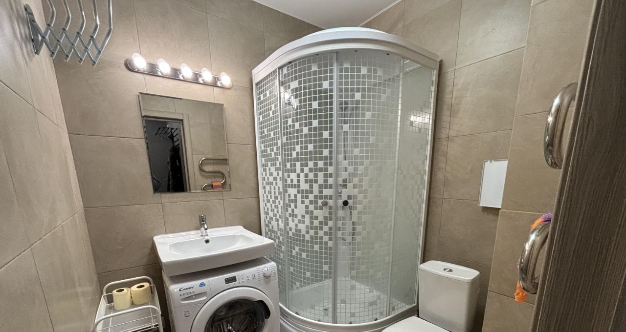Квартира с косметическим ремонтом, что позволяет вам сразу заселиться и наслаждаться комфортом. В комнате и на кухне есть необходимая мебель, а также вся важная техника: кондиционер, холодильник и стиральная машина. Ванная комната оборудована душевой кабиной, что делает ее функциональной и удобной.