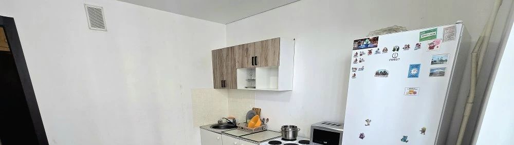 Имеется всё для комфортного проживания: стенка, шкаф для одежды, двуспальный диван, стол и стулья, холодильник, телевизор, стиральная машинка-автомат, электрочайник.
