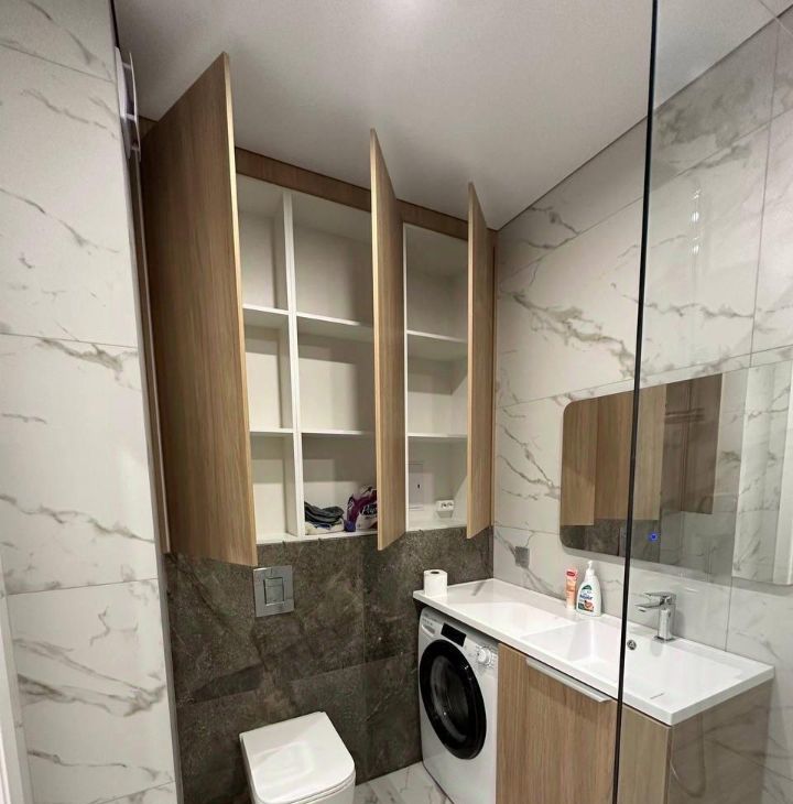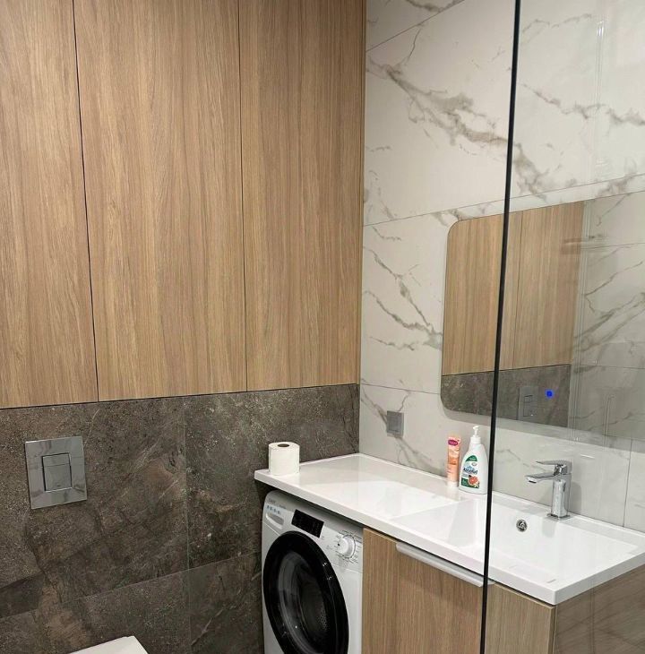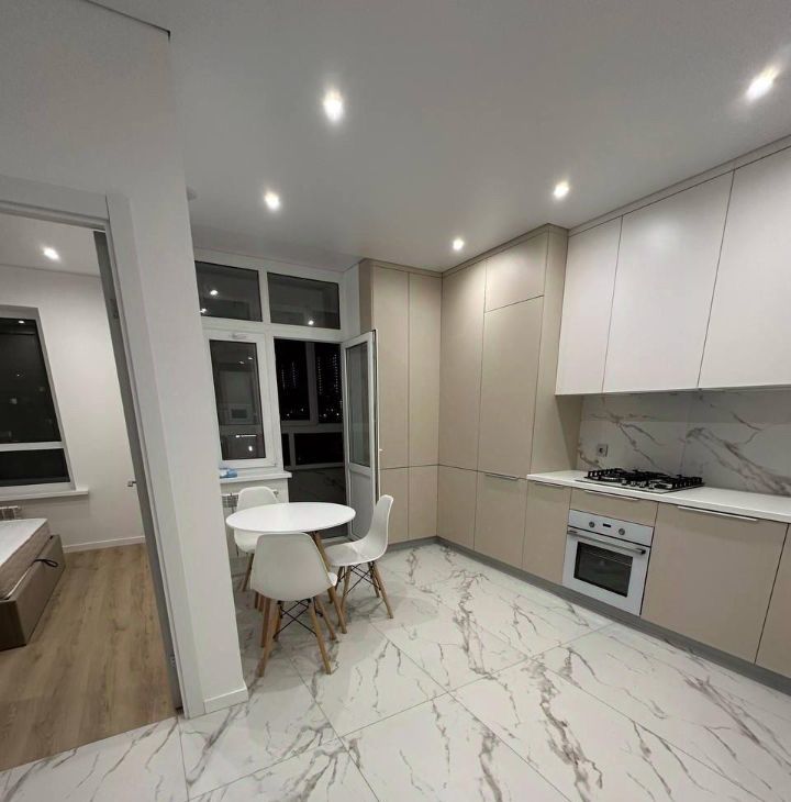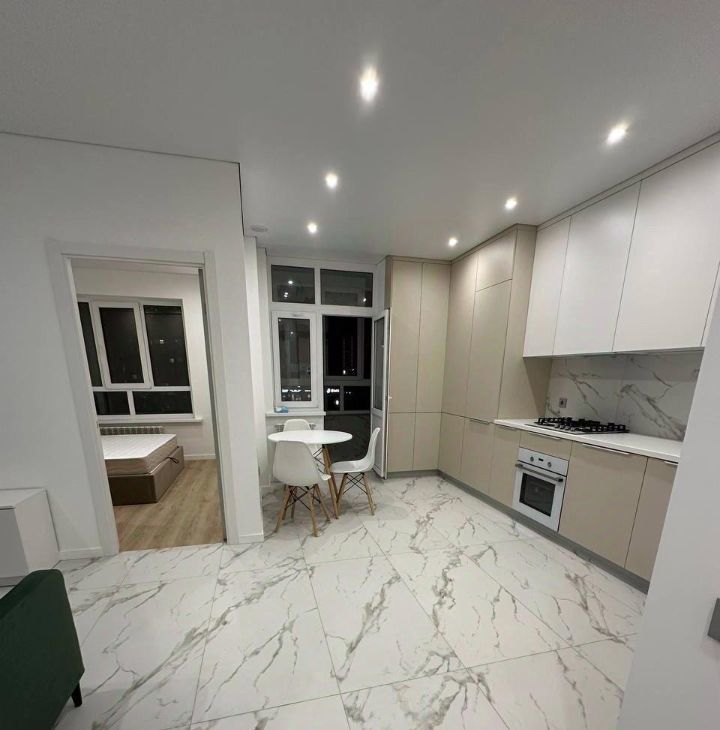 Сдается современная квартира на третьем этаже монолитно-кирпичного дома, построенного в 2022 году. Дом оснащен пассажирским и грузовым лифтами. Просторная большая кухня - гостиная, оборудована всей необходимой техникой, включая холодильник , посудомоечную машину, стиральную машину, кондиционер, много вместительных шкафов. В квартире выполнен свежий евро ремонт, что видно по современному дизайну и качественным материалам. В комнате установлен вместительный шкаф и кровать, в гостиной диван раздвижной создавая комфортное пространство для отдыха. Санузел совмещенный, оформлен в стильном мраморном стиле. Из окон открывается вид на закрытую территорию двора, где расположена детская площадка. Курение запрещено, но можно проживать с детьми. Парковка за шлагбаумом обеспечивает безопасность автомобиля. Квартира сдается впервые , ранее в ней никто не проживал!