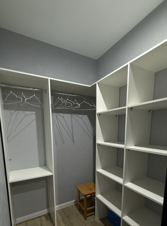 В квартире очень много места для хранения (как на кухне, так и в гардеробной комнате, так и в самой спальне. Санузел очень большой (больше 5кв.м), для любителей принять большую и роскошную ванную