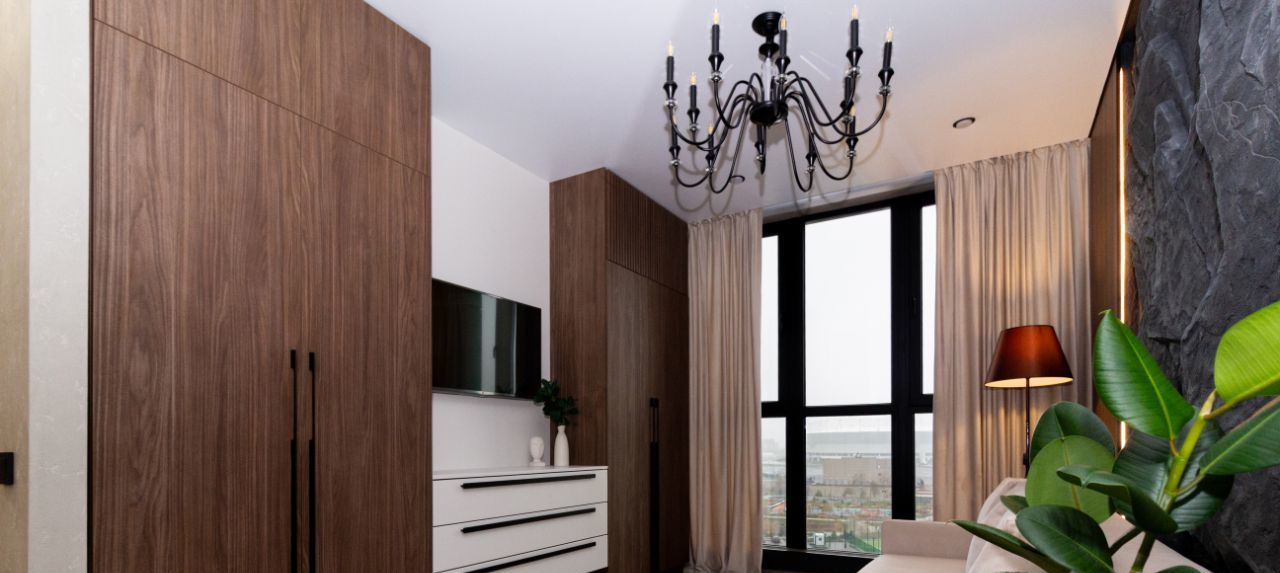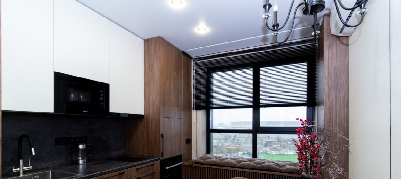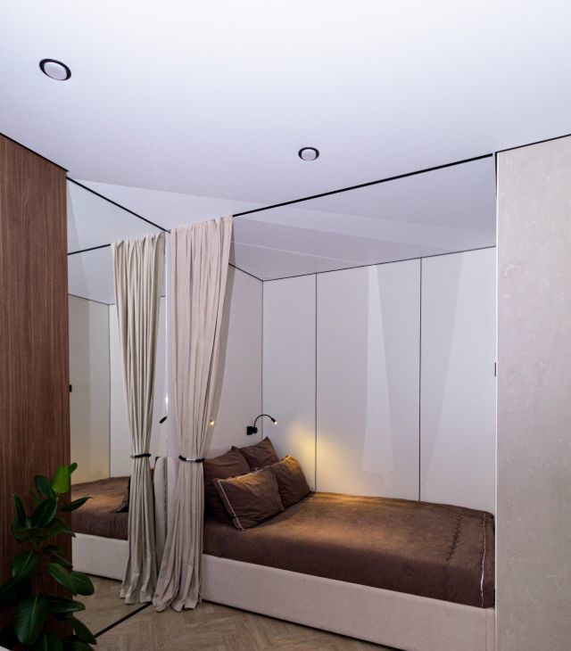 Мебель под заказ, встраиваемая бытовая техника. Два спальных места: двуспальная кровать и двуспальный диван-кровать. Скоростной интернет WiFi 6 ax.