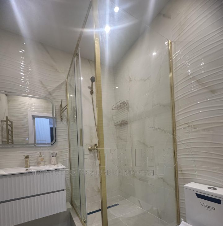 Ремонт продуман до мелочей, красивые межкомнатные двери, коллекционные обои на стенах, натяжные потолки, плитка в совмещении санузел к, витражное остекление на балконе.