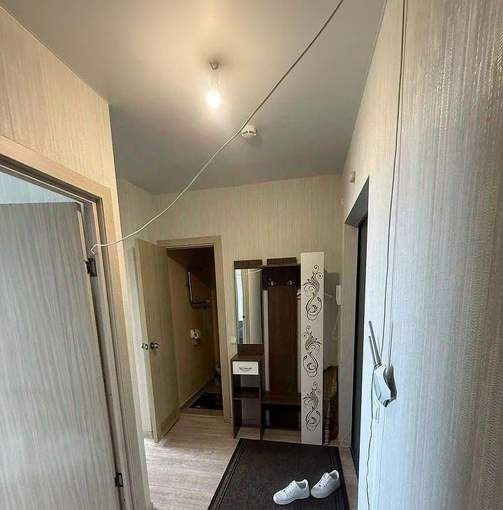 Сдается уютная однокомнатная квартира на девятом этаже нового панельного дома 2022 года постройки. Дом оснащен мусоропроводом и имеет грузовой и пассажирский лифты.