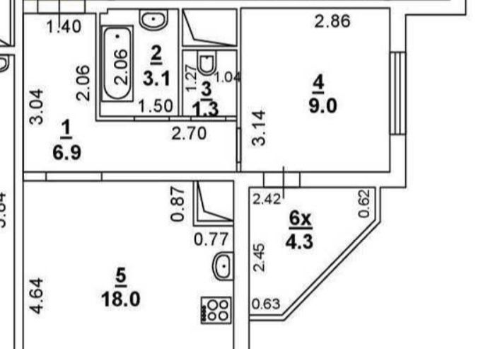 Свободной планировки кв. Ростовская область, Ростов-на-Дону ул. Зорге, 15 (48.6 м²)
