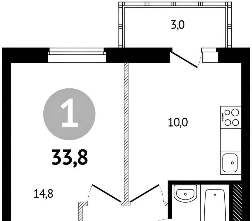 1-к кв. Ростовская область, Ростов-на-Дону ул. Еременко, 114 (33.3 м²)