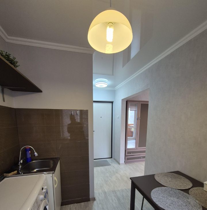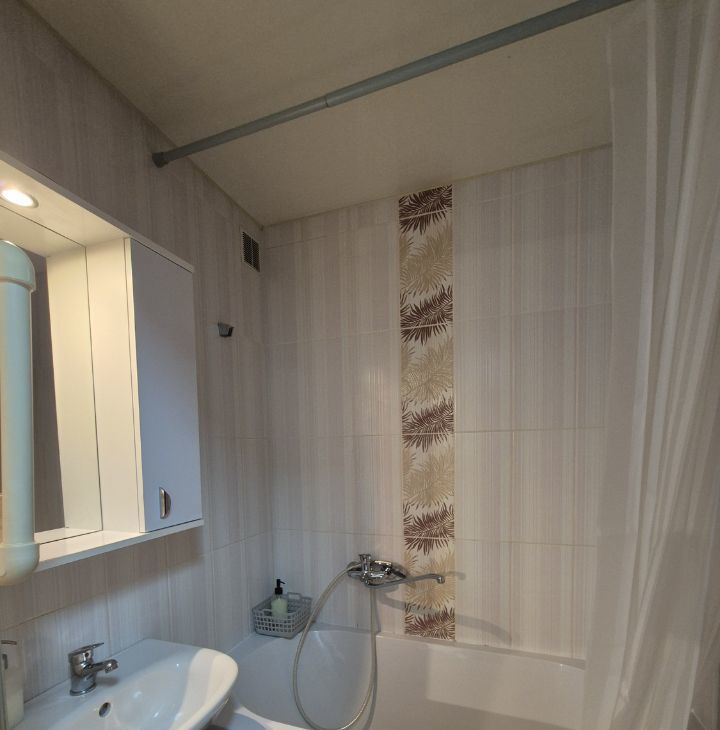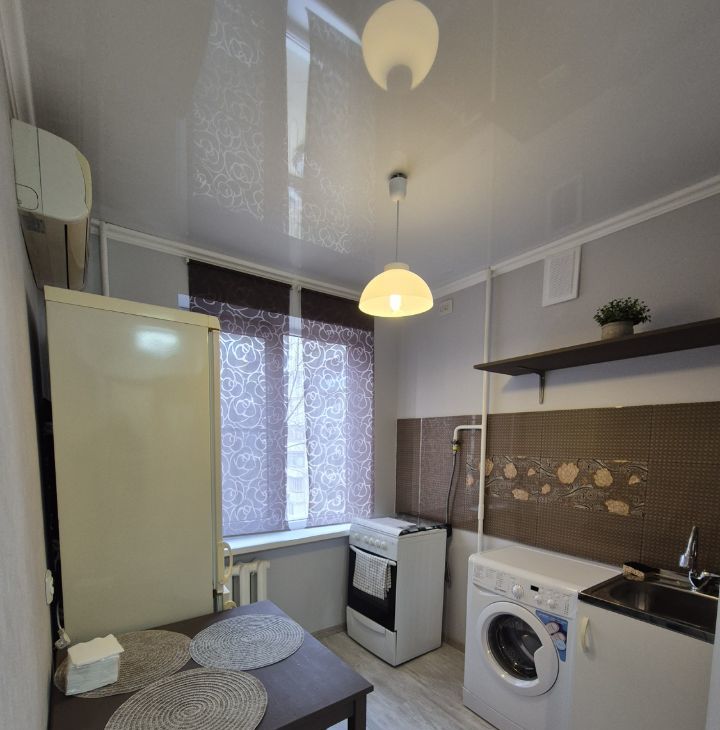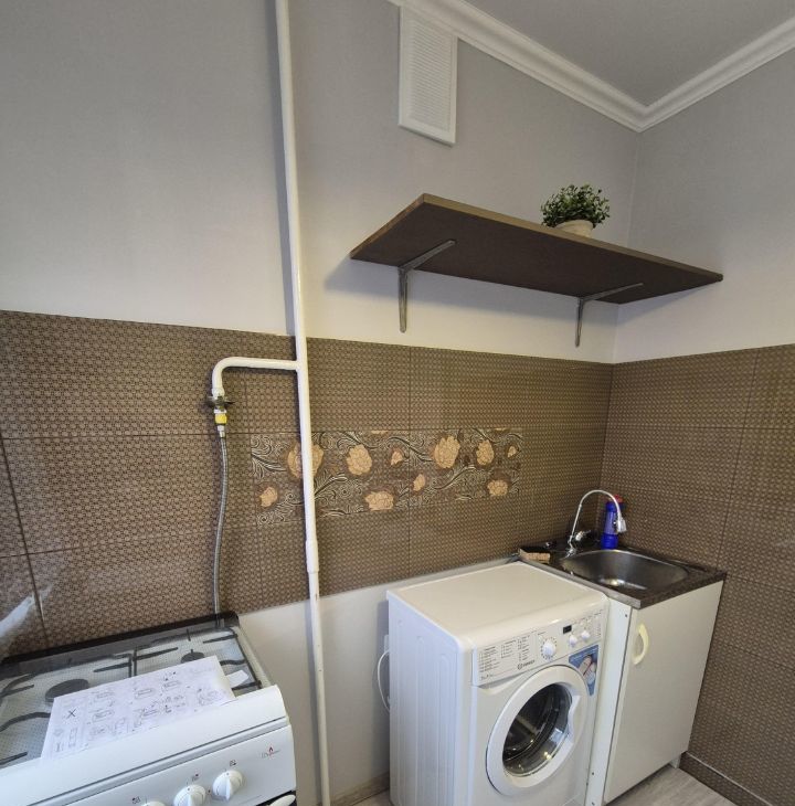 В квартире есть всё необходимое для комфортного проживания: мебель в комнате и на кухне, кондиционер, холодильник, стиральная машина. Совмещенный санузел оборудован ванной. Небольшая кухня площадью 6 кв. м позволяет разместить все необходимые кухонные принадлежности и организовать уютное пространство для приготовления пищи.