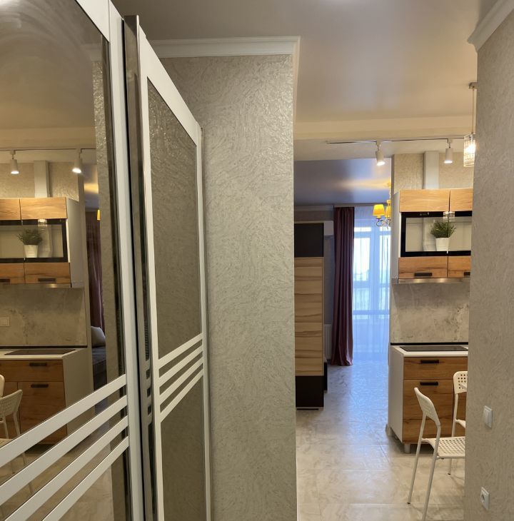 В квартире выполнен дизайнерский ремонт, что создаёт современную и уютную атмосферу. Для вашего комфорта здесь есть вся необходимая техника: кондиционер, холодильник, телевизор и стиральная машина. Квартира полностью меблирована: уютная мебель расположена в комнате и на кухне. Из окон открывается приятный вид как на улицу, так и на ТЦ Горизонт( через дорогу.)