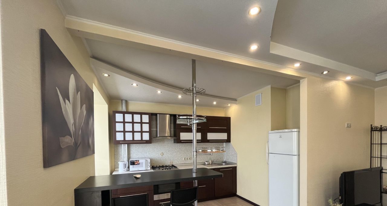 В квартире выполнен евроремонт, поэтому вы сможете сразу наслаждаться её современным и стильным интерьером. В комнате и на кухне есть вся необходимая мебель, что избавляет от лишних хлопот. К вашим услугам кондиционер, холодильник, телевизор и стиральная машина. В ванной комнате установлена ванна, а санузел совмещённый. Также есть уютная лоджия, где можно расслабиться после рабочего дня.