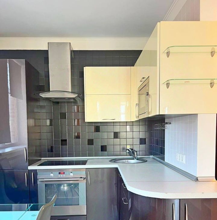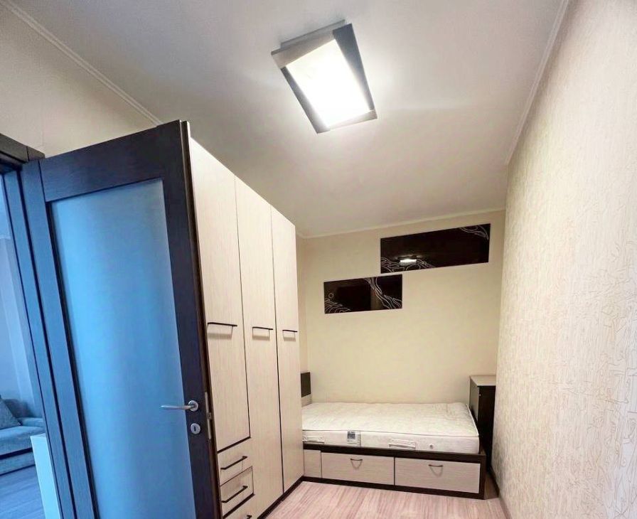 Состояние очень достойное, заходи - живи. Мебель и техника: диван, много мест хранения, шкафы, в спальне кровать с ортопед.матрасом, холодильник, стир.машина, хороший кухонный гарнитур, варочная панель с духовым шкафом, вытяжка, СВЧ-печь, вытяжка, кондиционер, телевизор.