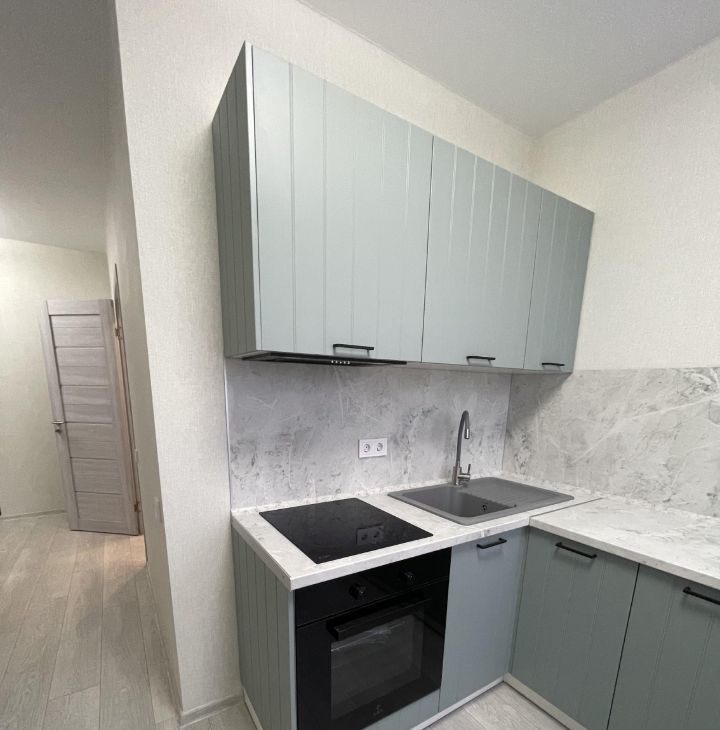 Просторная кухня оборудована новой бытовой техникой и мебелью включая: холодильник, варочная панель, духовой шкаф, микроволновую печь, вытяжку,стол, раскладной Диван.