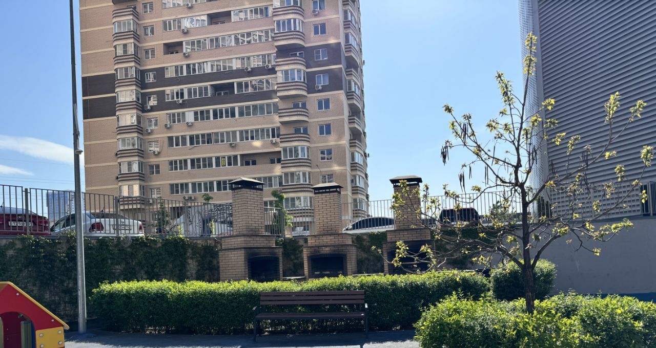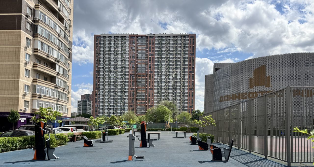 На территории комплекса мангальная зона,детская и спортивная площадки,множество кофеен,магазинов,аптек,пунктов выдачи.
