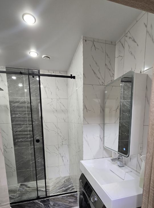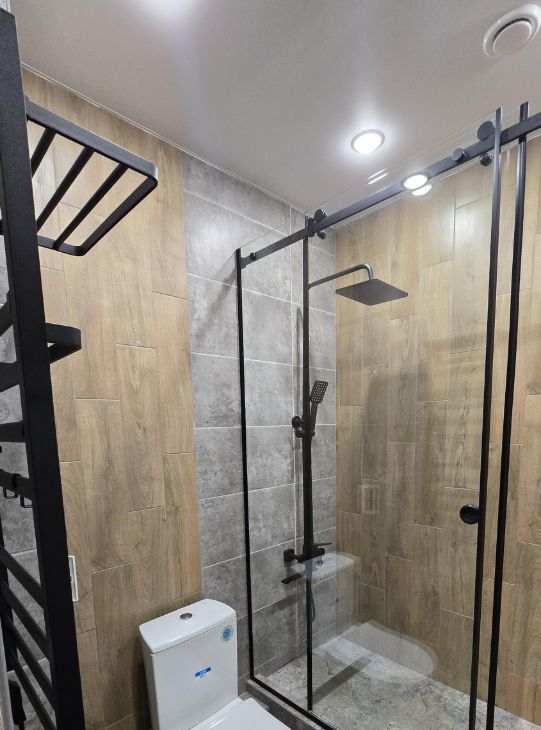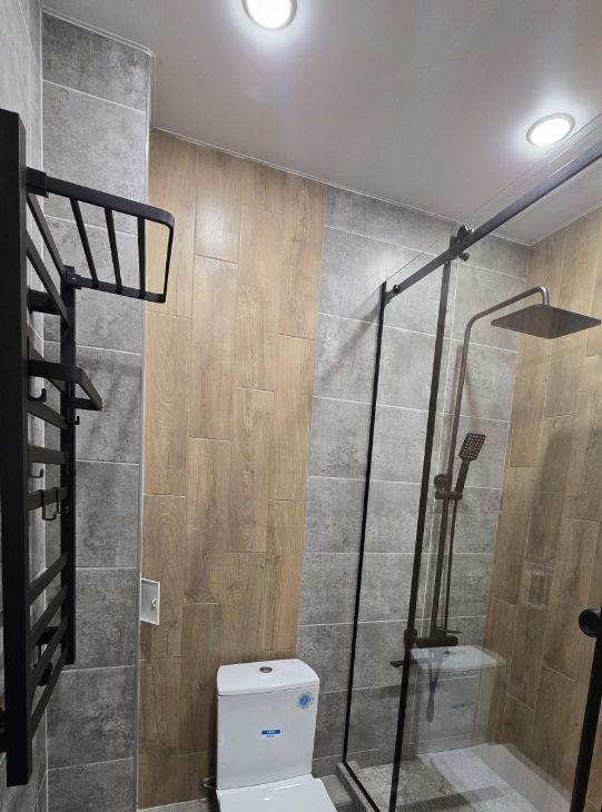 Встроенный холодильник, новая модульная кухня с техникой, микроволновая печь встроена....