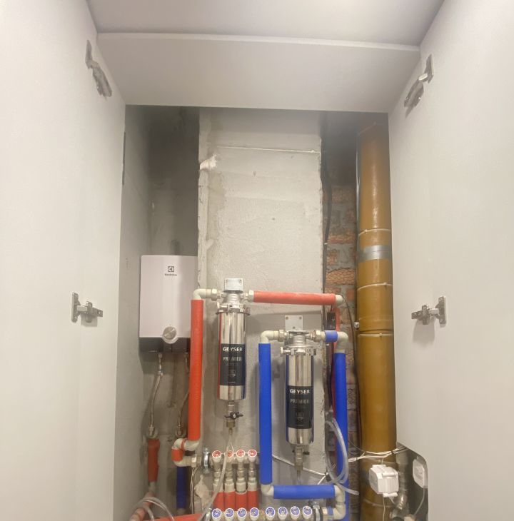 - Установлены датчики от протечек в ключевых точках;