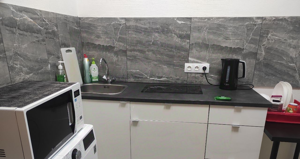 Стиральная машина, микроволновка, телевизор, Wi-fi, сплит система, TV (Zona, HDRezka, YouTube работают), водонагреватель в ванной (если отключат горячую воду, вы сможете принять теплый душ)