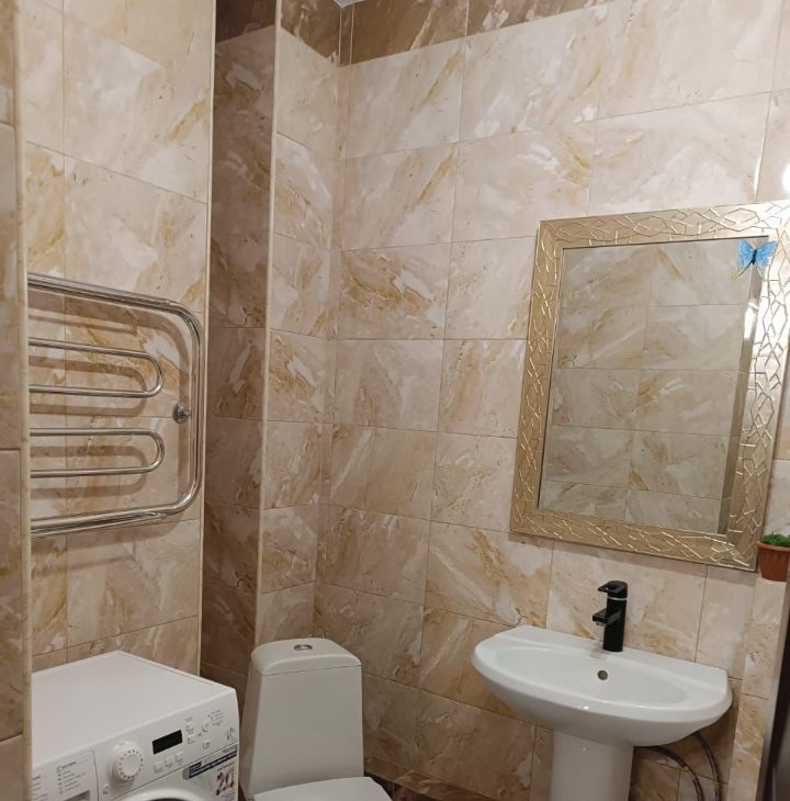 В квартире выполнен косметический ремонт. В комнате есть вся необходимая мебель для комфортного проживания. Кухня просторная, площадью 12 кв. м, где можно удобно разместиться как для приготовления пищи, так и для приема гостей. В наличии вся необходимая техника: кондиционер, холодильник, телевизор и стиральная машина. Санузел совмещенный, оборудован ванной.