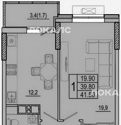 1-к кв. Ростовская область, Ростов-на-Дону ул. Шеболдаева, 95с1 (38.2 м²)