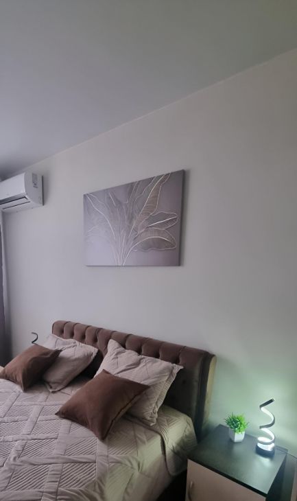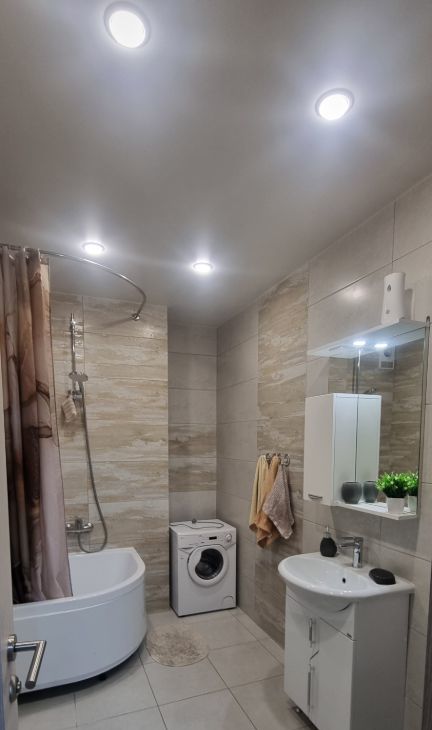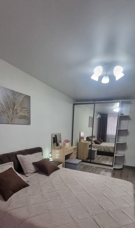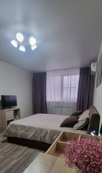 В квартире выполнен свежий евро ремонт. Просторная кухня оборудована всем необходимым: холодильник, плита, микроволновая печь и стиральная машина. Из мебели — шкафы и удобная кровать с ортопедическим матрасом. В спальне установлен кондиционер и телевизор.