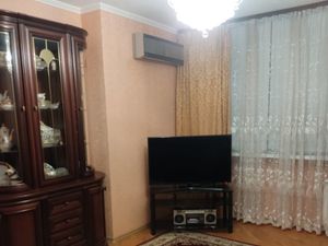 Есть всё необходимое для комфортного проживания(кухонная мебель с бытовой техникой ,большой раскладывающийся угловой-двуспальный диван,есть дополнительная складная кровать ,вместительный шкаф в комнате, гостиная, сплит-система, стиральная машина.