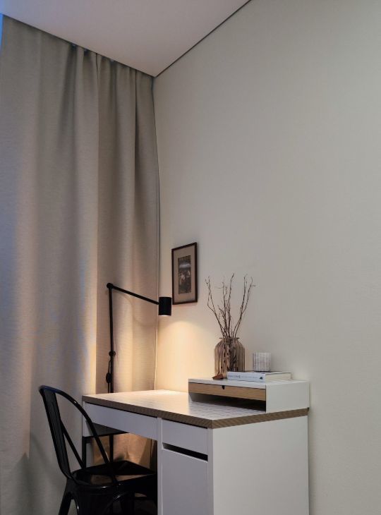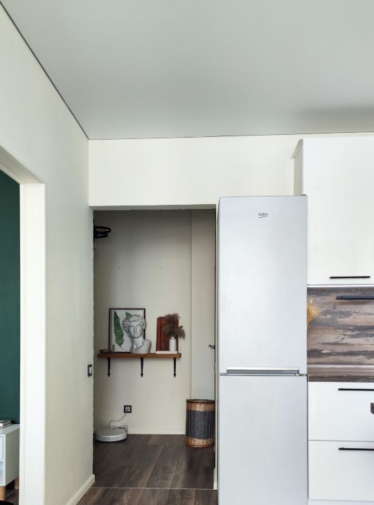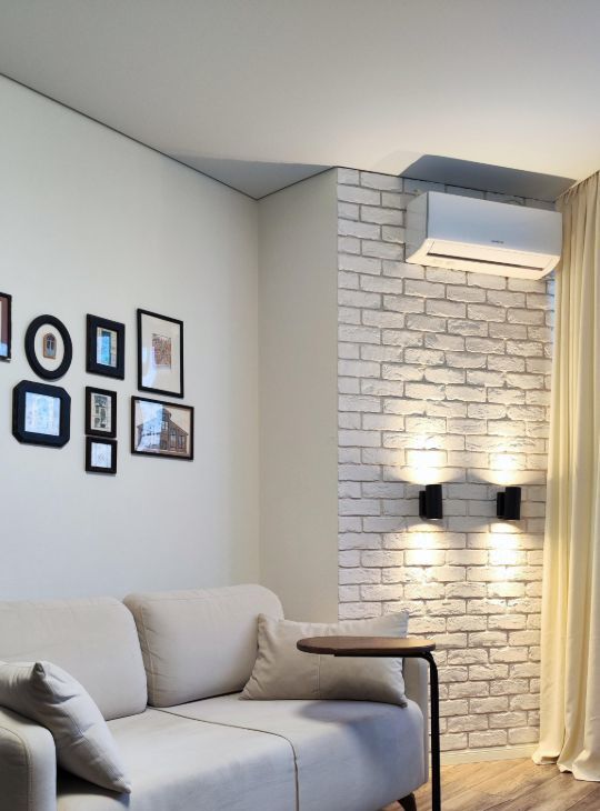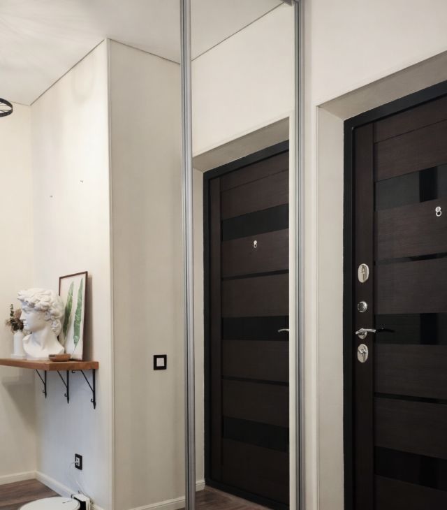 Несмотря на компактную площадь, квартира ощущается значительно просторнее — за счет световых решений, грамотной расстановки мебели и чистой композиции пространства.