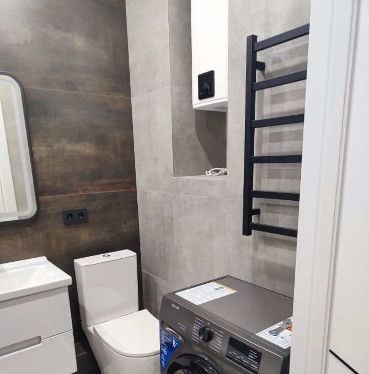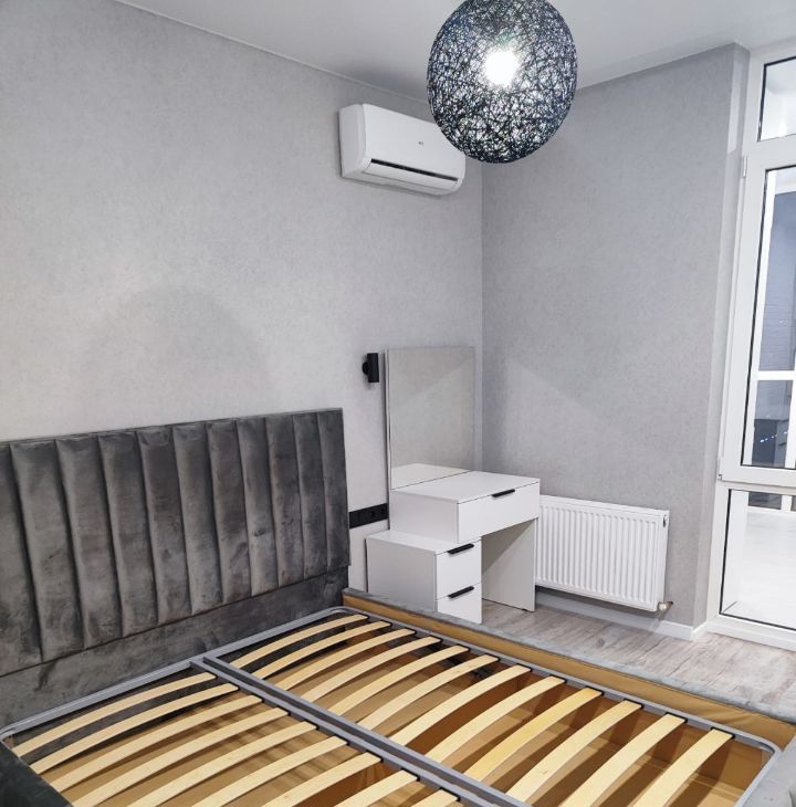 Квартира оснащена всем необходимым для комфортного проживания. Здесь выполнен современный ремонт, в комнате и на кухне установлена мебель, которая создает атмосферу уюта и удобства. Для вашего комфорта есть кондиционер, холодильник, телевизор и стиральная машина. Санузел совмещенный, с ванной, где можно расслабиться после рабочего дня.
