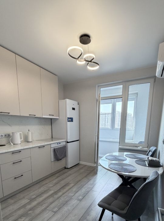 Сдаётся уютная однокомнатная квартира в новом доме на улице Зорге, 11В, в Ростове-на-Дону. Площадь квартиры - 36 кв. м, с жилой площадью 15 кв. м и просторной кухней в 12 кв. м. Квартира находится на 12 этаже 25-этажного дома, построенного в 2024 году. Высота потолков - 2,7 метра, что добавляет ощущение простора.