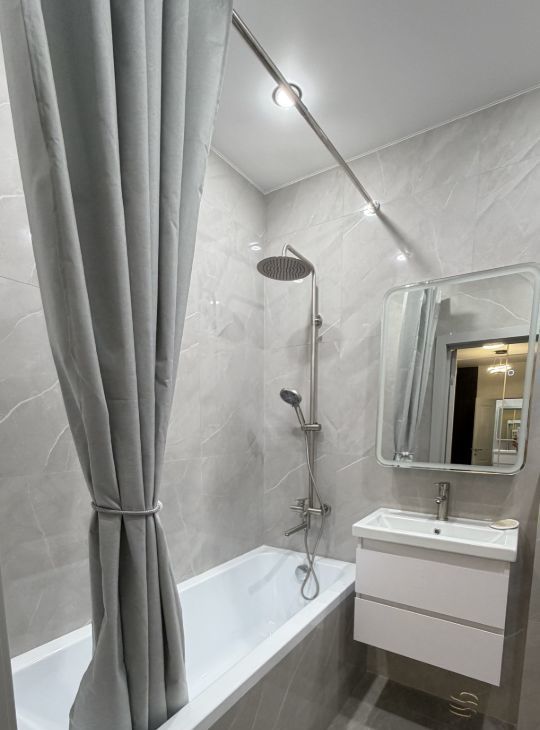 В квартире сделан качественный евроремонт, благодаря чему вы сможете наслаждаться современным и стильным интерьером. Вся необходимая мебель уже есть и на кухне, и в комнате. Для вашего комфорта установлена техника: кондиционер, холодильник, телевизор и стиральная машина. Ванная комната оснащена ванной, что позволит вам расслабляться после трудового дня. Из квартиры есть выход на балкон, где можно отдохнуть на свежем воздухе.