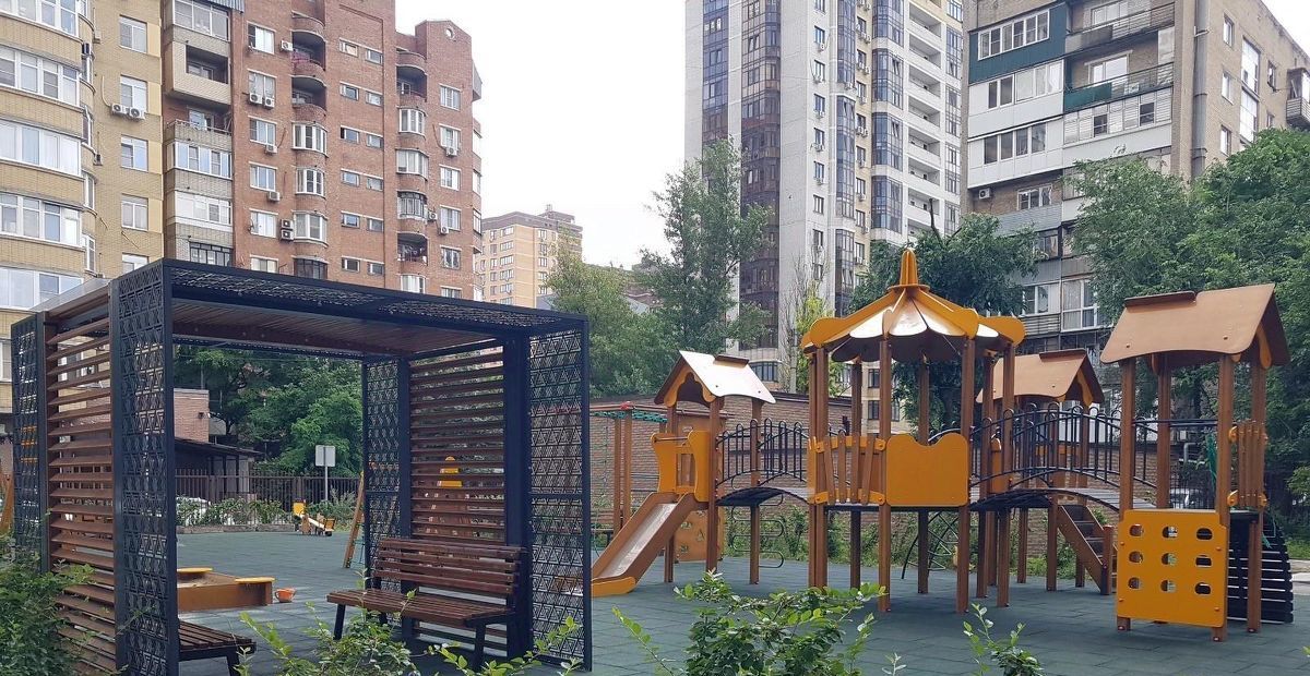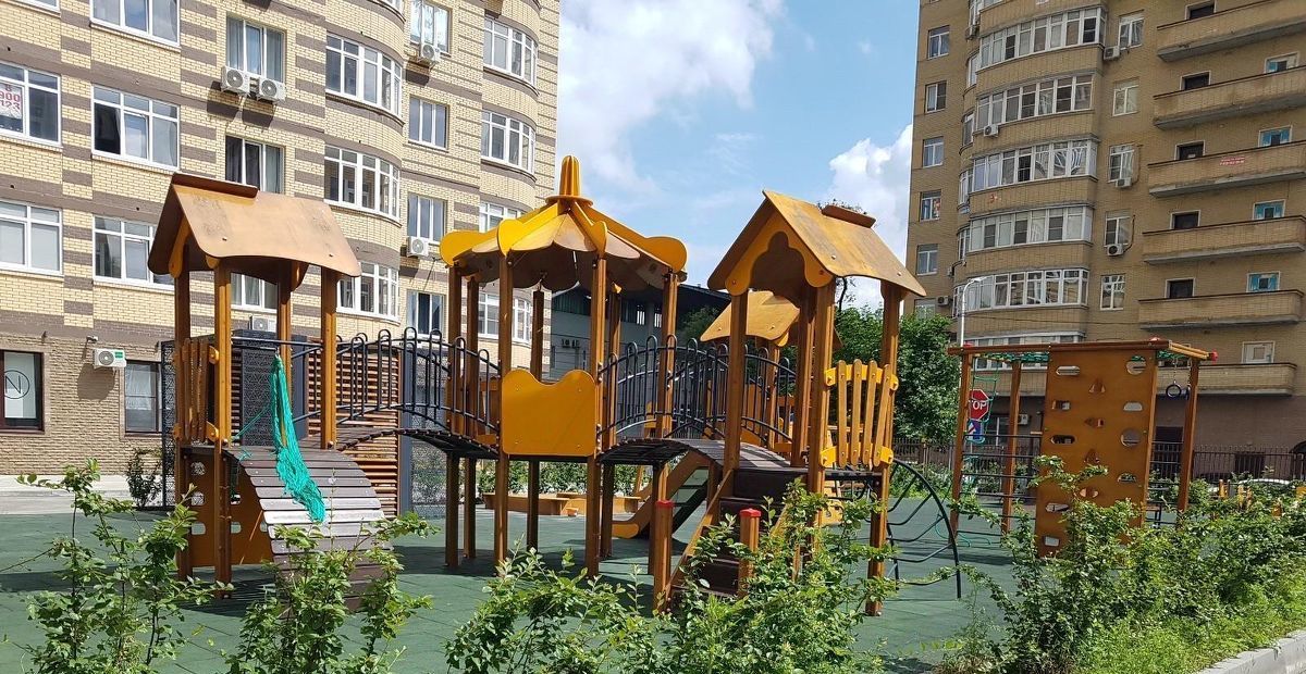 Территория находится под охраной и камерами видеонаблюдения, круглосуточный консьерж, видеодомофон, спортивная и игровые площадки. Есть подземная парковка на территории.