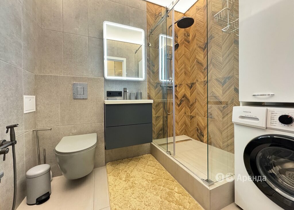 Сдаётся 1-комнатная квартира площадью 32 кв.м. с дизайнерским ремонтом на 13 этаже в 24-этажном доме на срок от 11 месяцев. Из техники есть: