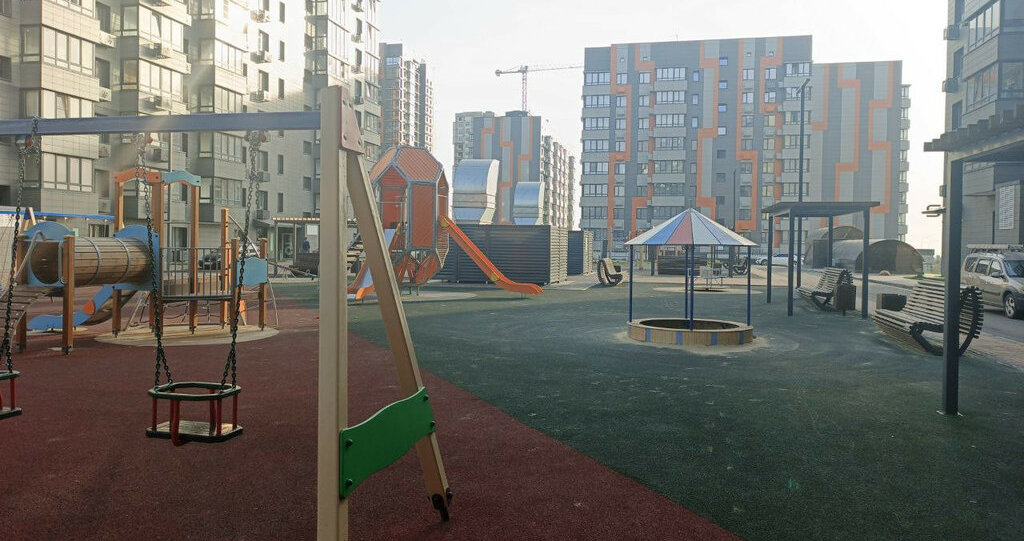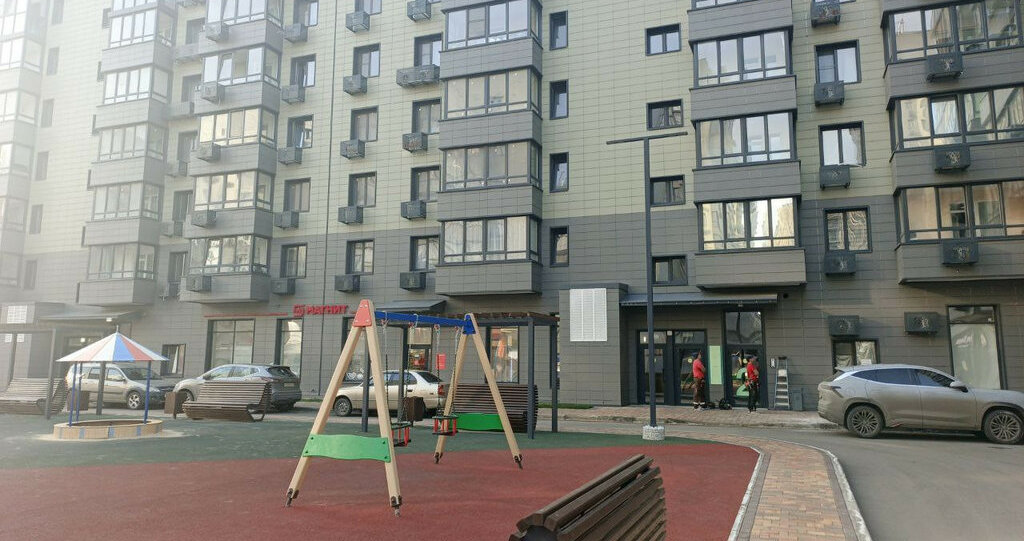 Развитая инфраструктура и локация района. Во дворе детская площадка, подземная парковка, магазины Пятерочка, Магнит, кофейни.