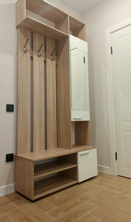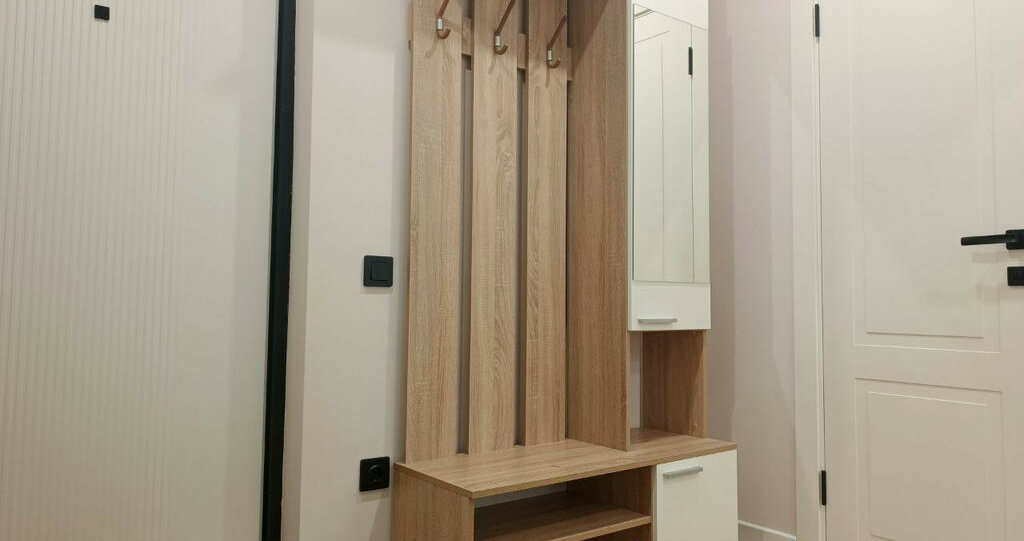 В коридоре вместительный шкаф и быстрая вешалка.