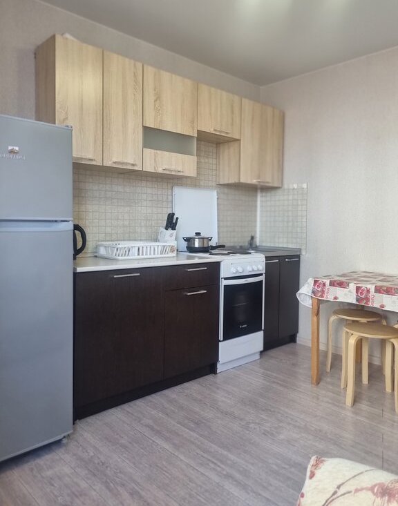 -Квартира оборудована всей необходимой техникой и мебелью для комфортного - проживания ( холодильник, стиральная машина , стенка, два дивана, кухонный гарнитур, обеденный стол со стульями, прихожка)