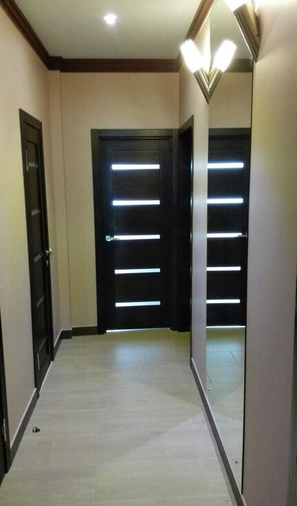 Большие зеркала в прихожей и ванной — визуально расширяют пространство.