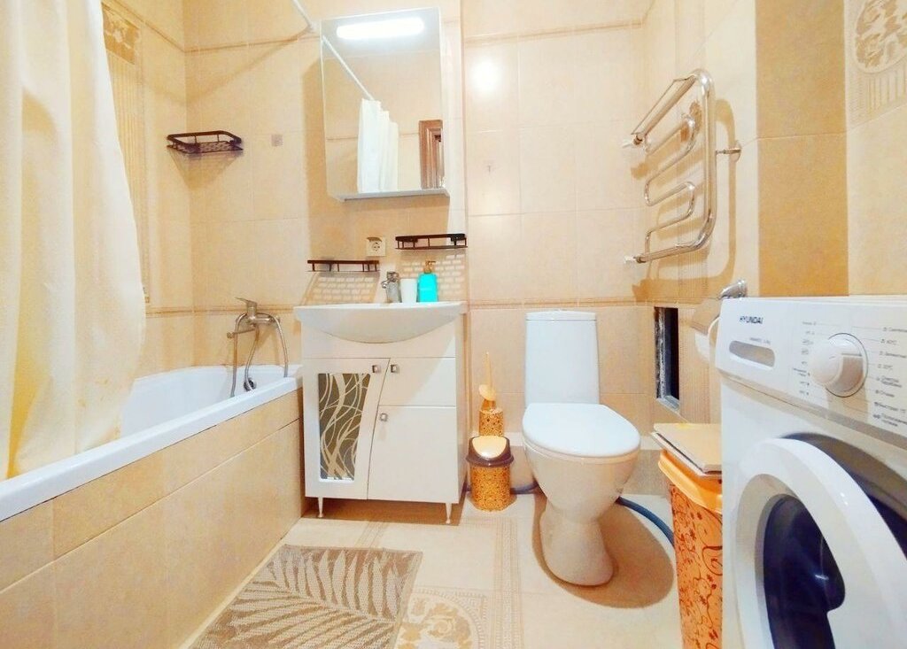 В квартире есть все необходимое для комфортного проживания: большой удобный раскладной диван, телевизор, кондиционер, места для хранения вещей, стиральная машина, холодильник.